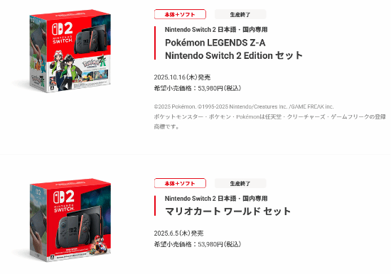 两款主机目前仍可正常购买,但想必不会长久,这取决于任天堂库存的多少。值得注意的是,任天堂官方在去年年底时仅表示,将停产《马里奥赛车世界》同捆版Switch 2,并未提到《宝可梦传说:Z-A》同捆版Switch 2。