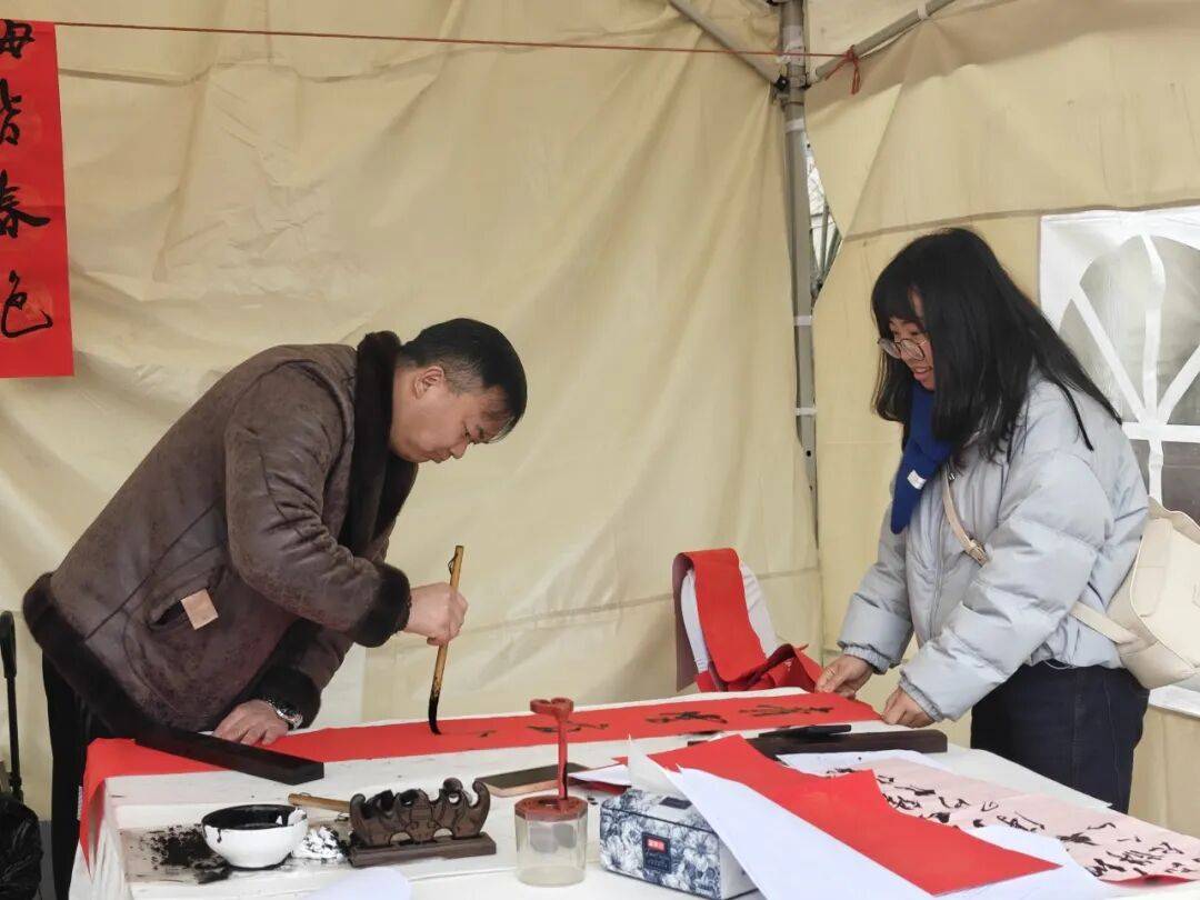 投壶游戏达到指定成绩便可兑换特色小吃,猜中灯谜则能领取由贵阳贵安知名书法家亲手书写的春联,墨香与年味相融。作为投壶游戏的奖品兑换点,冰糖葫芦摊主孔萍说:“市民投壶五进三即可兑换糖葫芦,今天已送出一百多串。我们准备了山楂、提子、橘子等多种口味,和大家一起甜甜蜜蜜迎新年。”