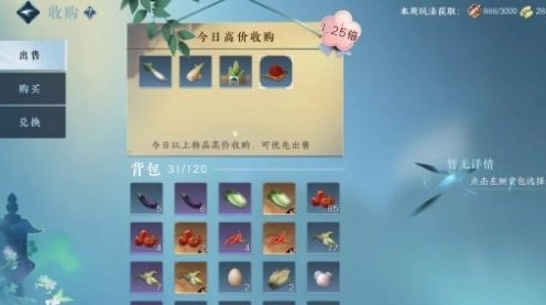玩家在庄园里获得的产物都可以在商人这边出售,商日的每日高价收购材料不同,也有一定的兑换物品从他那里获取。