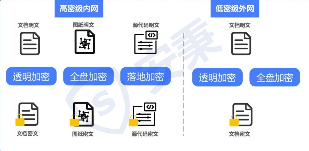 采用先进驱动透明加密技术,对图纸、文档等核心数据自动加密,不影响正常工作,密级高于外网。